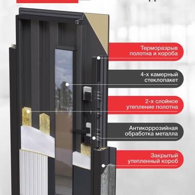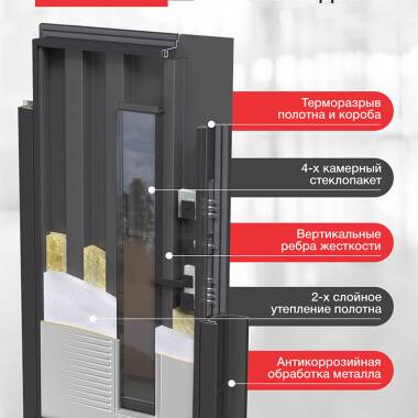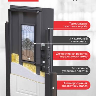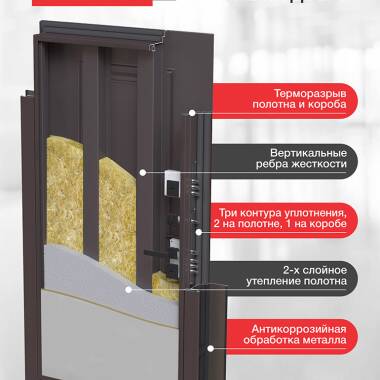 Полотно двери утеплено в 2 слоя базальтовой плиты