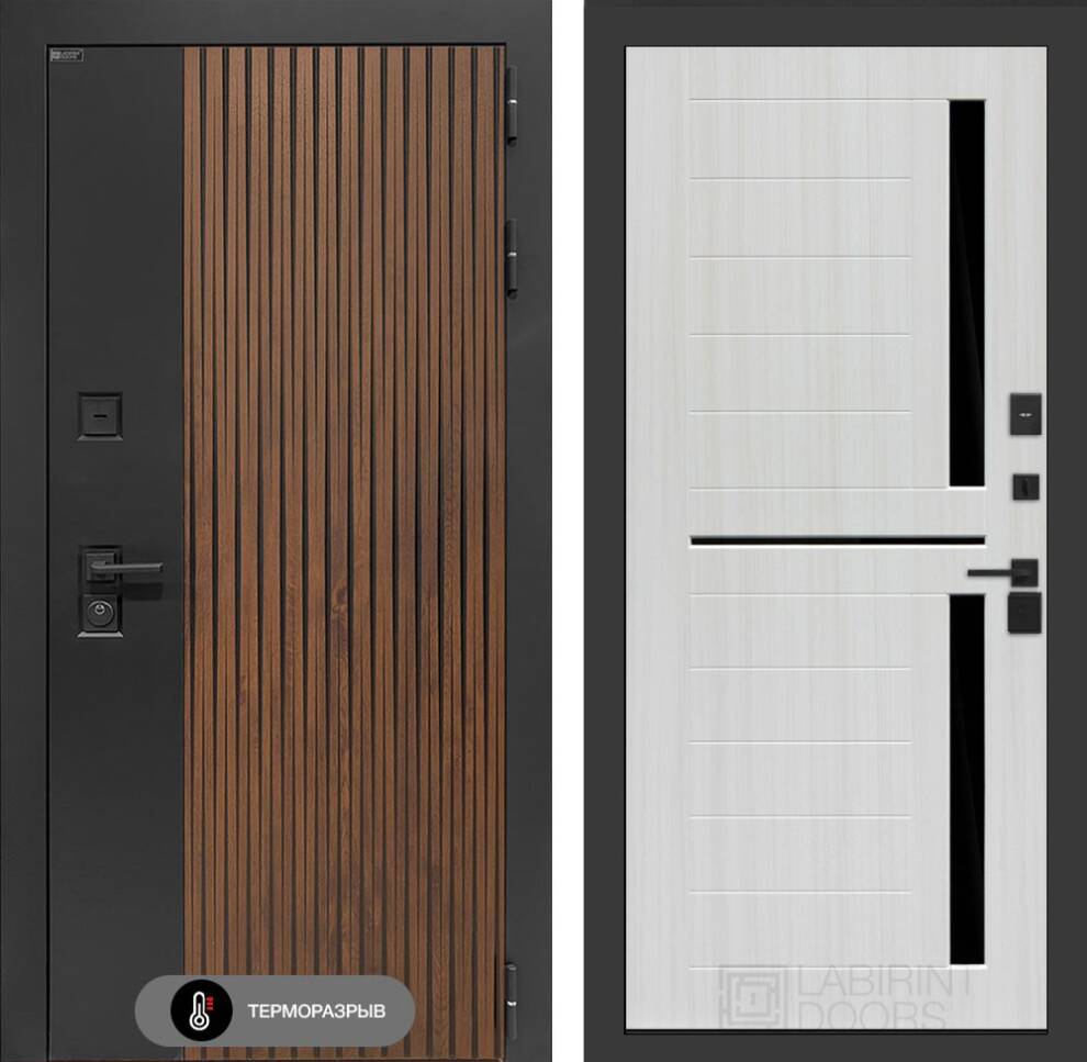 Входная дверь Айслаб 02 - Сандал белый, стекло черное