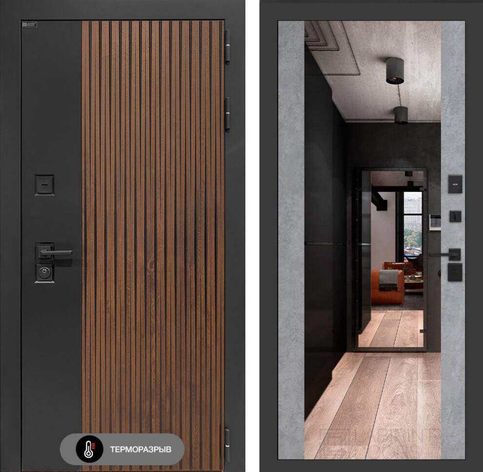 Входная дверь Айслаб с зеркалом Максимум - Бетон светлый