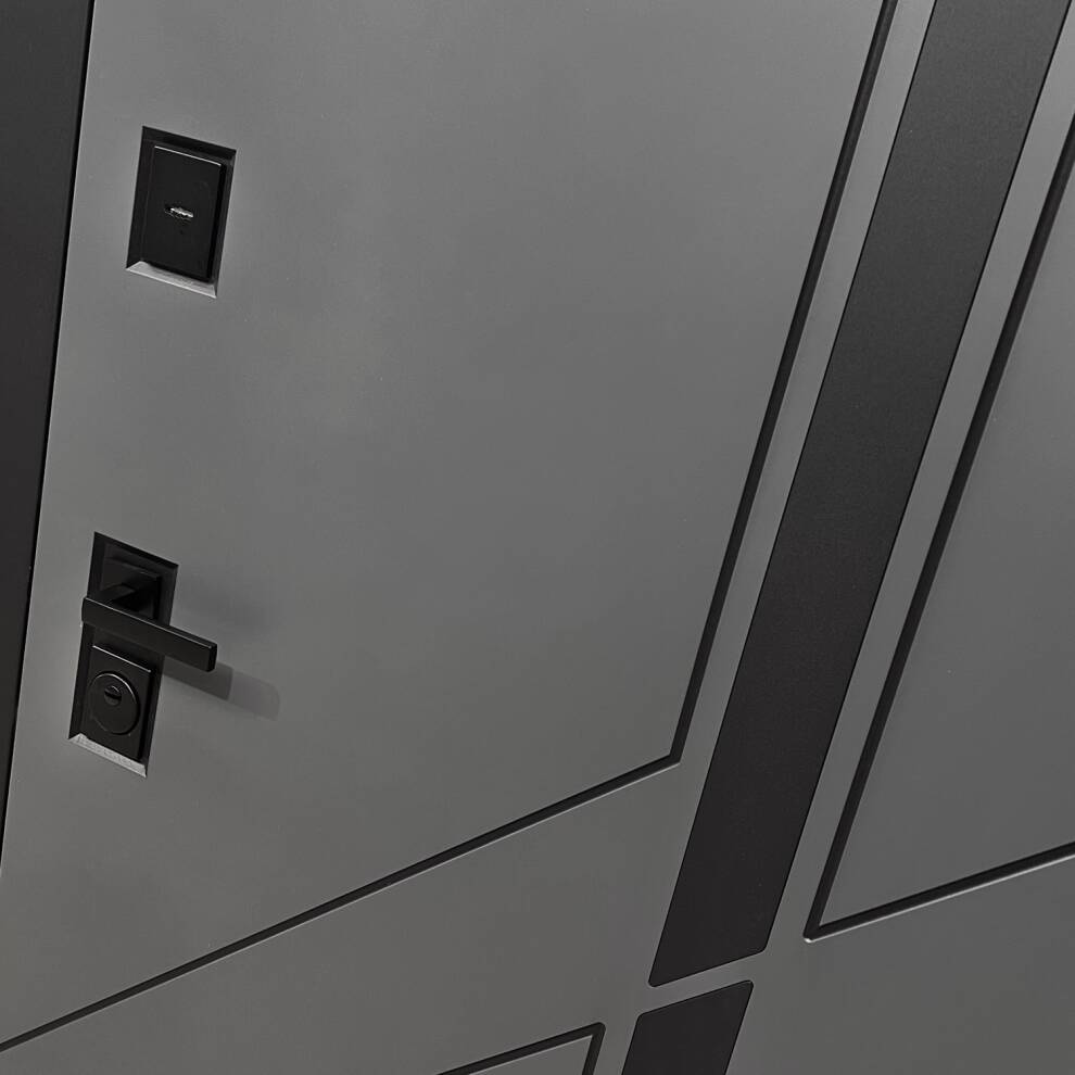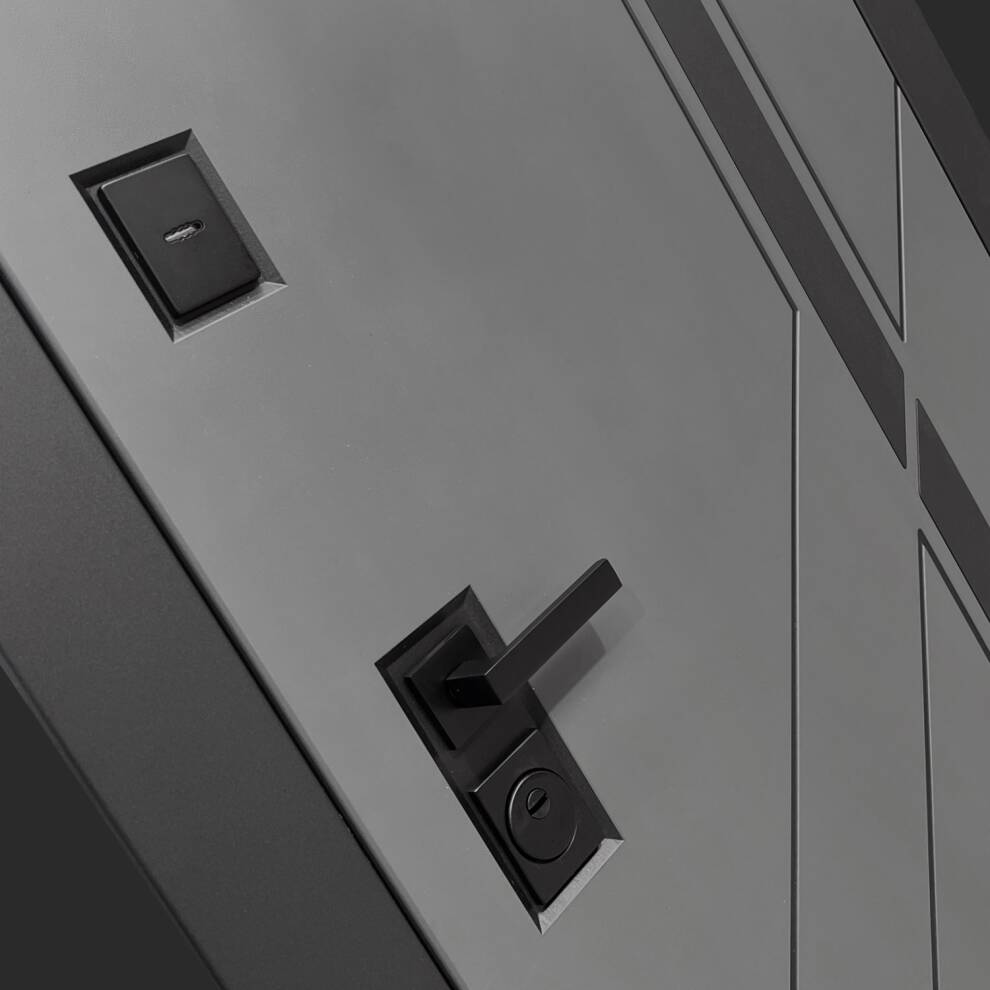 - Фурнитура в черном цвете: Броненакладка врезная, накладка со шторкой, глазок , дверная ручка, ночная задвижка. Цилиндр ключ-вертушка (производитель не регламентируется), регулируемый эксцентрик.