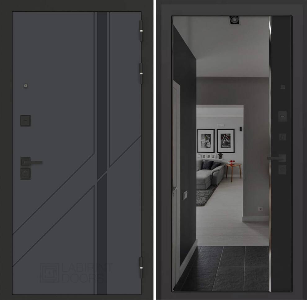 Входная дверь БН-12 с зеркалом (тонированное) Панорама - Черный кварц