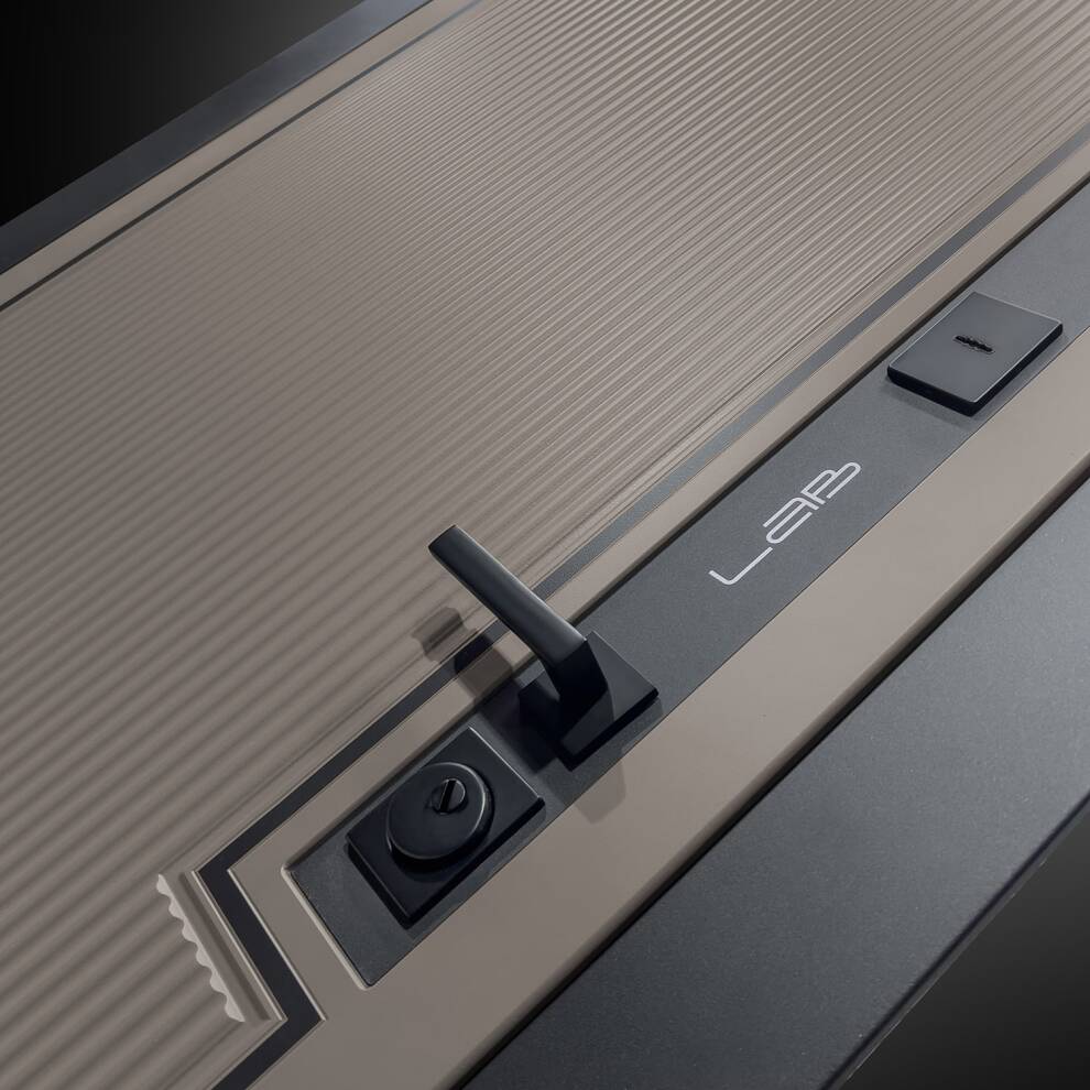 - Фурнитура в черном цвете: Броненакладка врезная, накладка со шторкой, глазок , дверная ручка, ночная задвижка. Цилиндр ключ-вертушка (производитель не регламентируется), регулируемый эксцентрик.