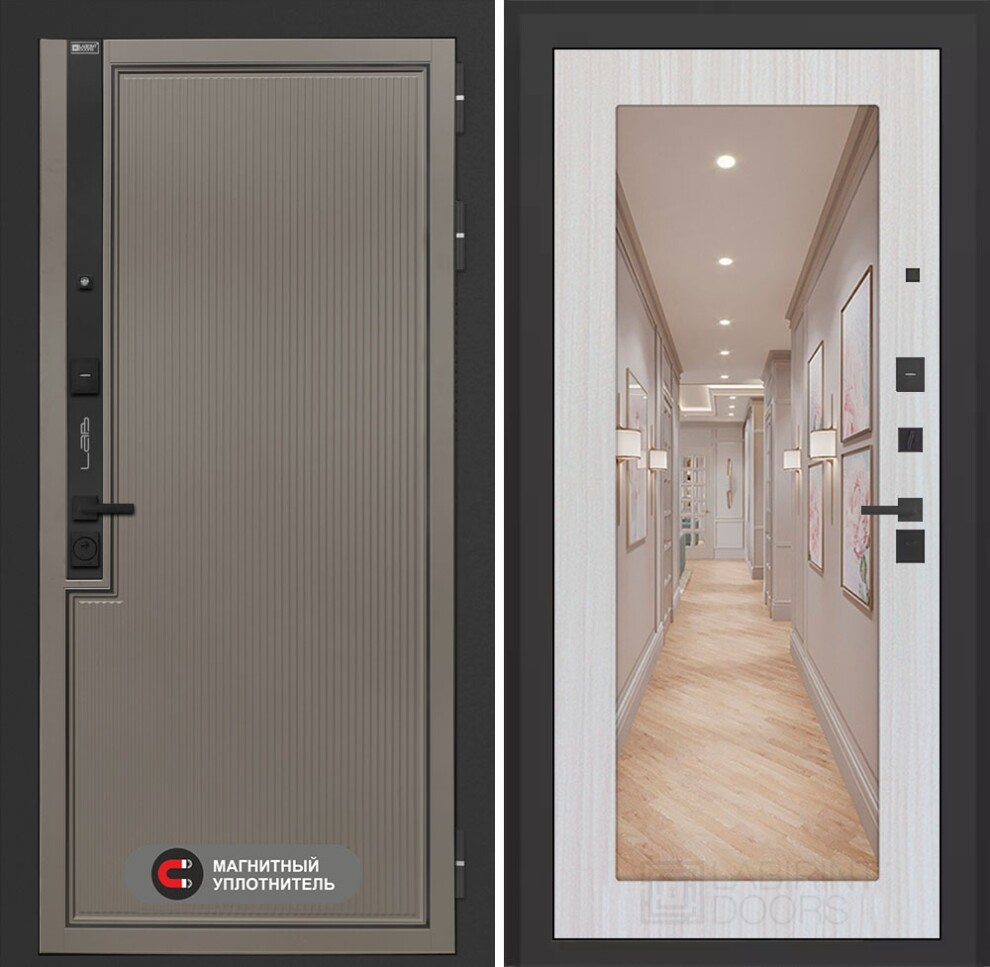 Входная дверь Лаб 1 Про с зеркалом 18 - Сандал белый