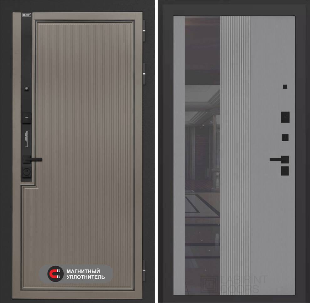 Входная дверь Лаб 1 Про с Зеркалом 32 тонированным - Серый рельеф софт
