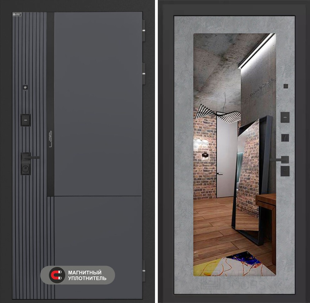 Входная дверь Лаб 2 Про с зеркалом 18 - Бетон светлый