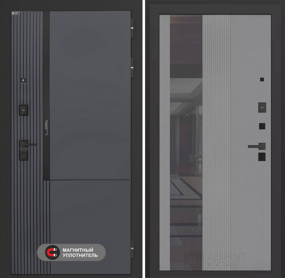 Входная дверь Лаб 2 Про с Зеркалом 32 тонированным - Серый рельеф софт