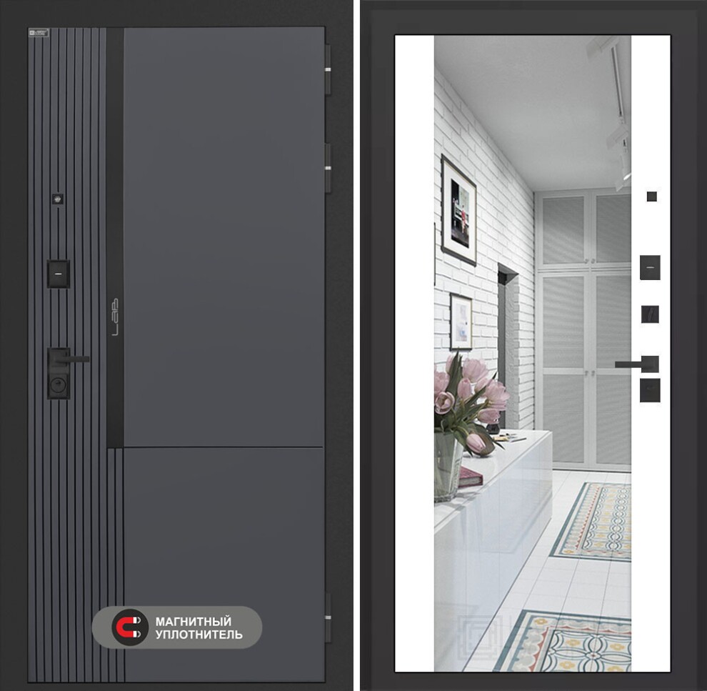 Входная дверь Лаб 2 Про с зеркалом Максимум - Белый софт