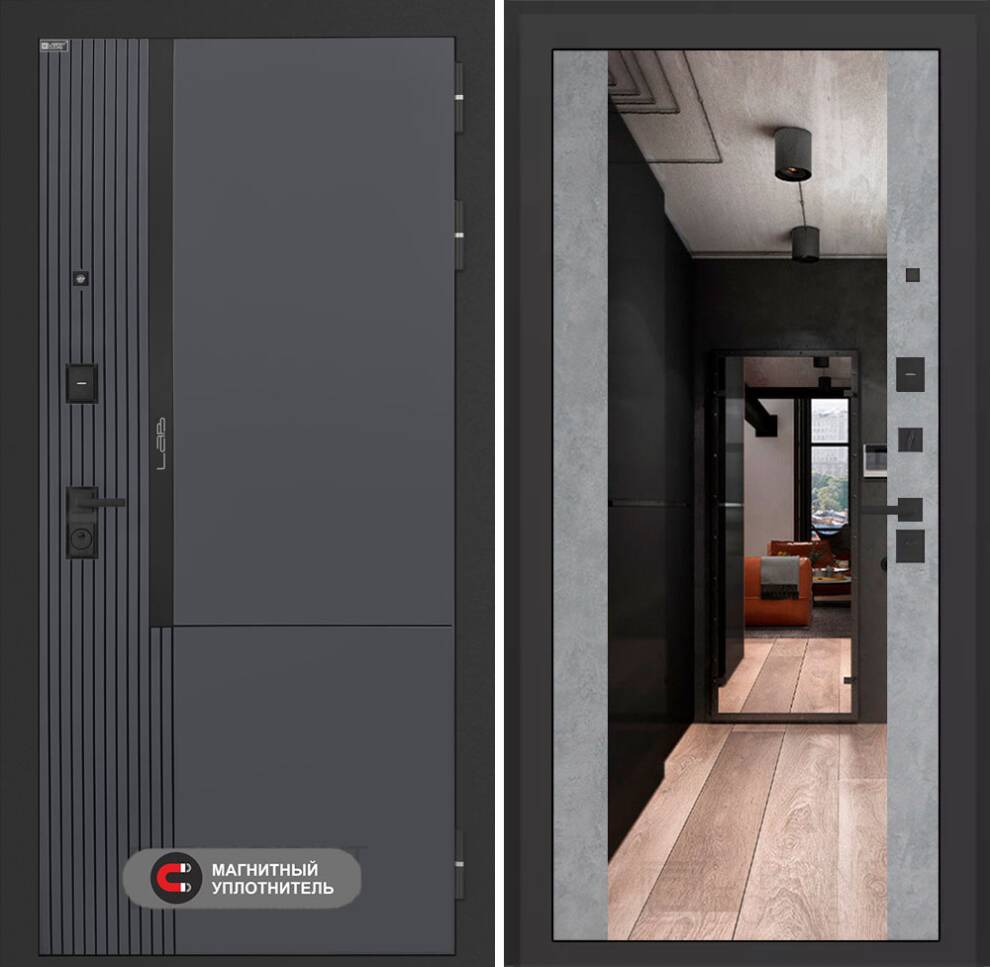 Входная дверь Лаб 2 Про с зеркалом Максимум - Бетон светлый