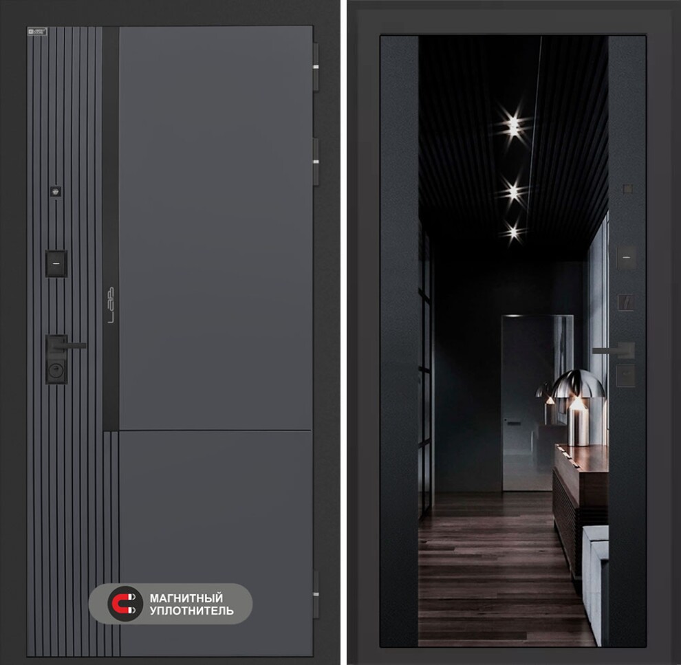 Входная дверь Лаб 2 Про с зеркалом (тонированное) Максимум - Черный кварц