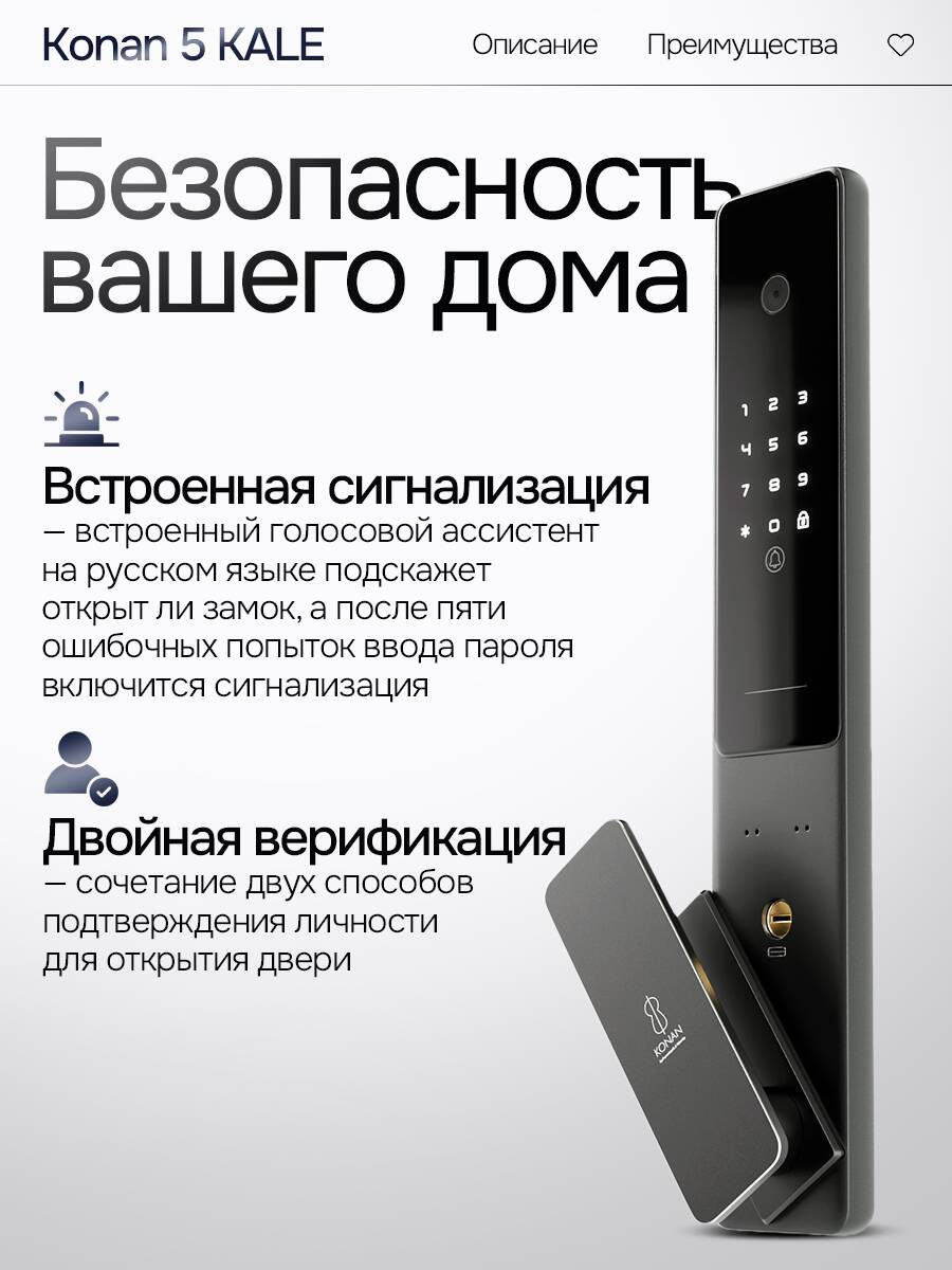 - Электронный замок Konan 5Kale (русифицированный) с Wi-Fi