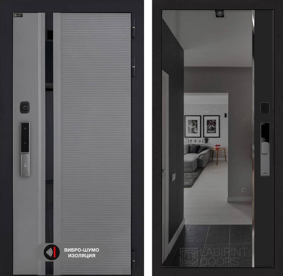 Входная дверь Пиано Смарт 2.0 с зеркалом (тонированное) Панорама - Черный кварц