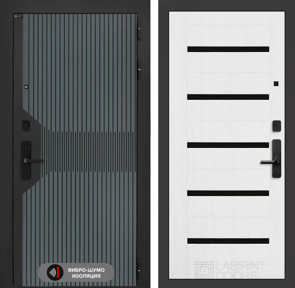 Входная дверь СмАртлаб 01 - Белое дерево, стекло черное