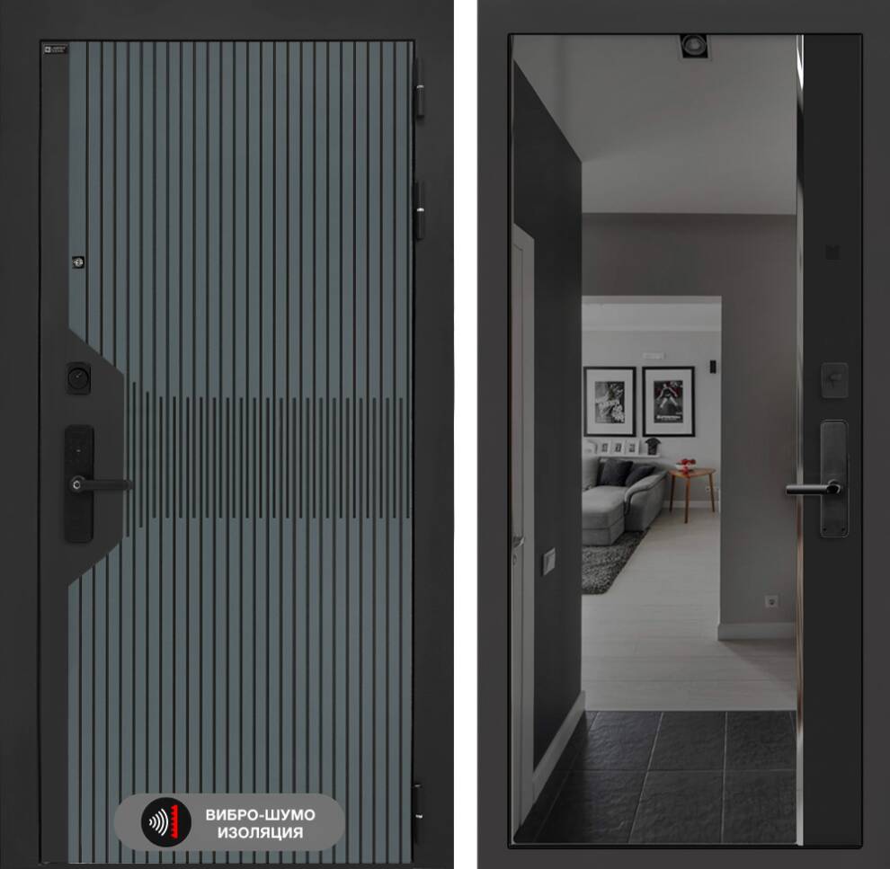 Входная дверь Смартлаб с зеркалом Панорама с тонировкой - Черный кварц