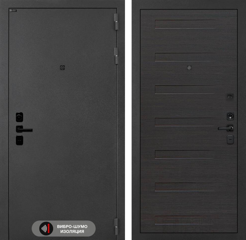 - Фурнитура в черном цвете: Броненакладка врезная, накладка со шторкой, глазок , дверная ручка, ночная задвижка. Цилиндр ключ-вертушка (производитель не регламентируется), регулируемый эксцентрик.