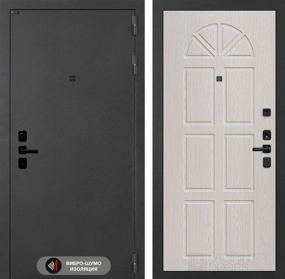 - Фурнитура в черном цвете: Броненакладка врезная, накладка со шторкой, глазок , дверная ручка, ночная задвижка. Цилиндр ключ-вертушка (производитель не регламентируется), регулируемый эксцентрик.