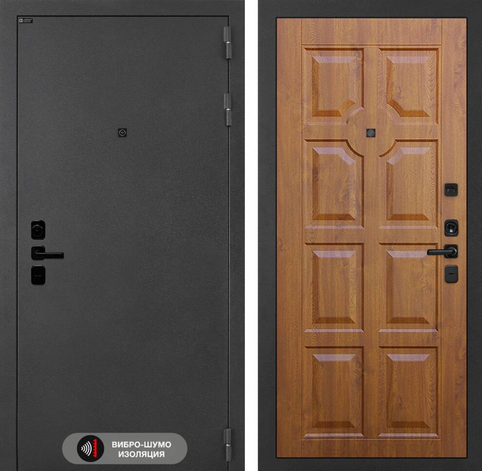 - Фурнитура в черном цвете: Броненакладка врезная, накладка со шторкой, глазок , дверная ручка, ночная задвижка. Цилиндр ключ-вертушка (производитель не регламентируется), регулируемый эксцентрик.