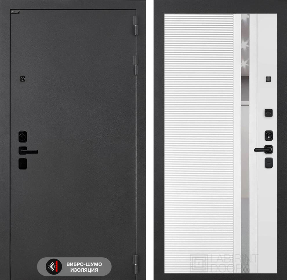 Входная дверь Соналаб 31 - Белый софт, зеркальная вставка с тонировкой