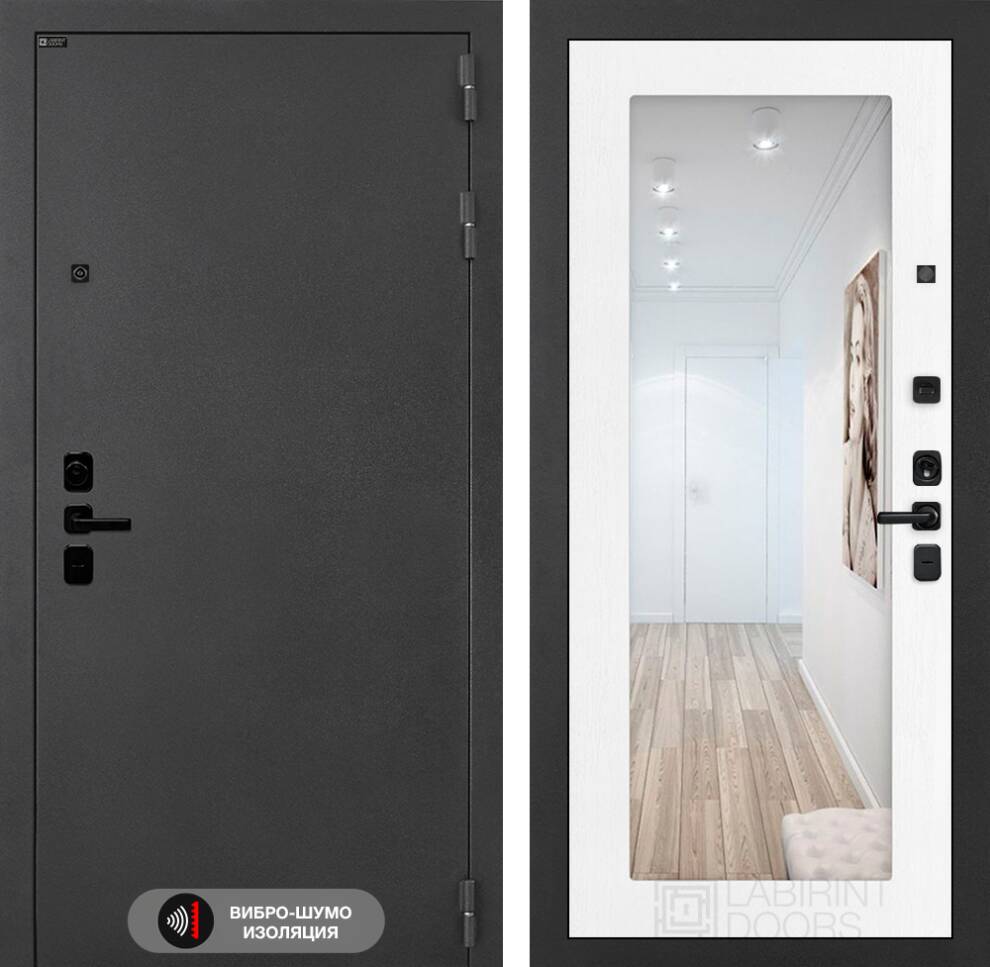 Входная дверь Соналаб с зеркалом 18 - Белое дерево