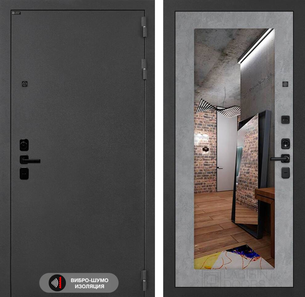 Входная дверь Соналаб с зеркалом 18 - Бетон светлый