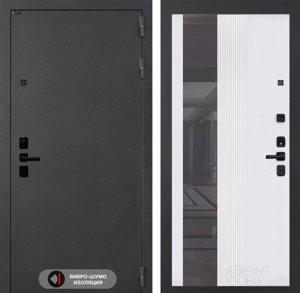Входная дверь Соналаб с зеркалом 32 тонированным - Белый рельеф софт