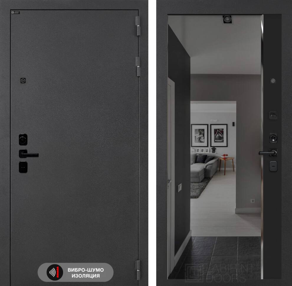 Входная дверь Соналаб с зеркалом Панорама с тонировкой - Черный кварц