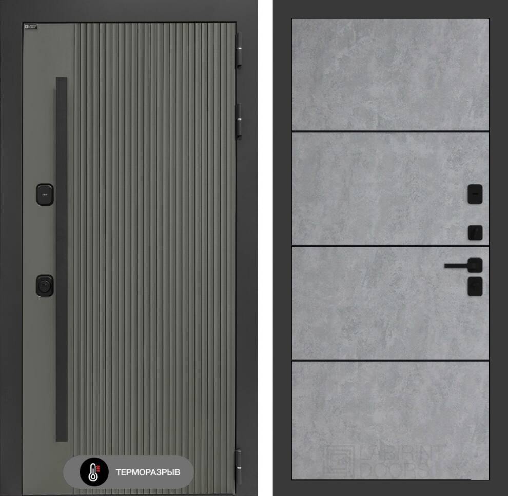 Входная дверь Термолаб 1 тепло 25 - Бетон светлый, черный молдинг