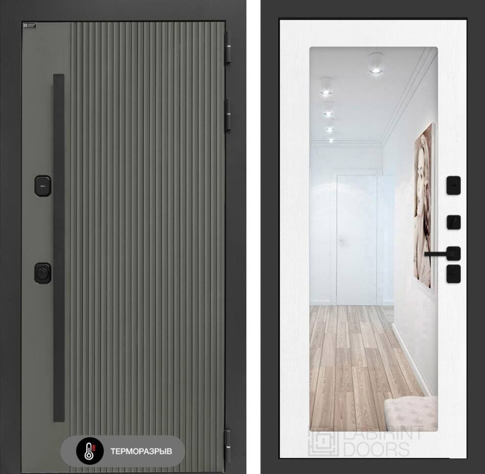 Входная дверь Термолаб 1 тепло с зеркалом 18 - Белое дерево