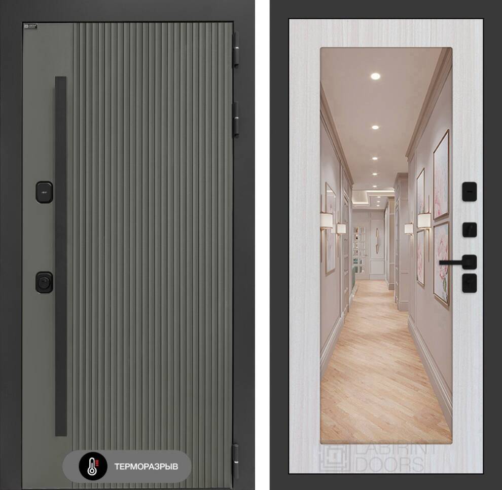 Входная дверь Термолаб 1 тепло с зеркалом 18 - Сандал белый