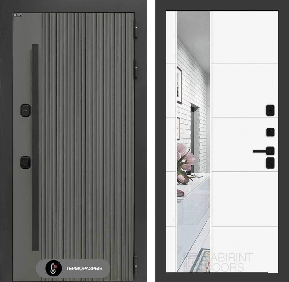 Входная дверь Термолаб 1 тепло с зеркалом 19 - Белый софт