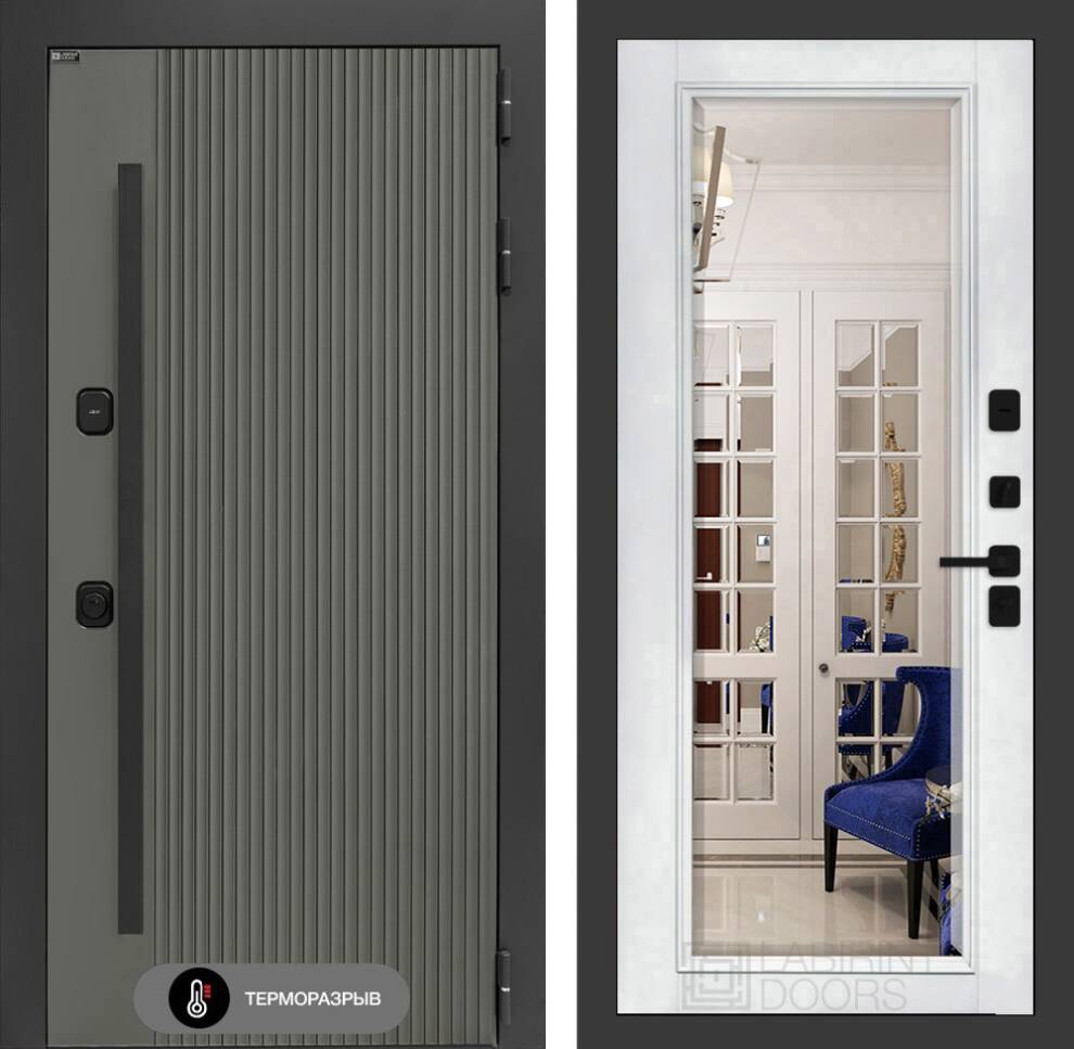 Входная дверь Термолаб 1 тепло с Зеркалом Фацет - Белый софт