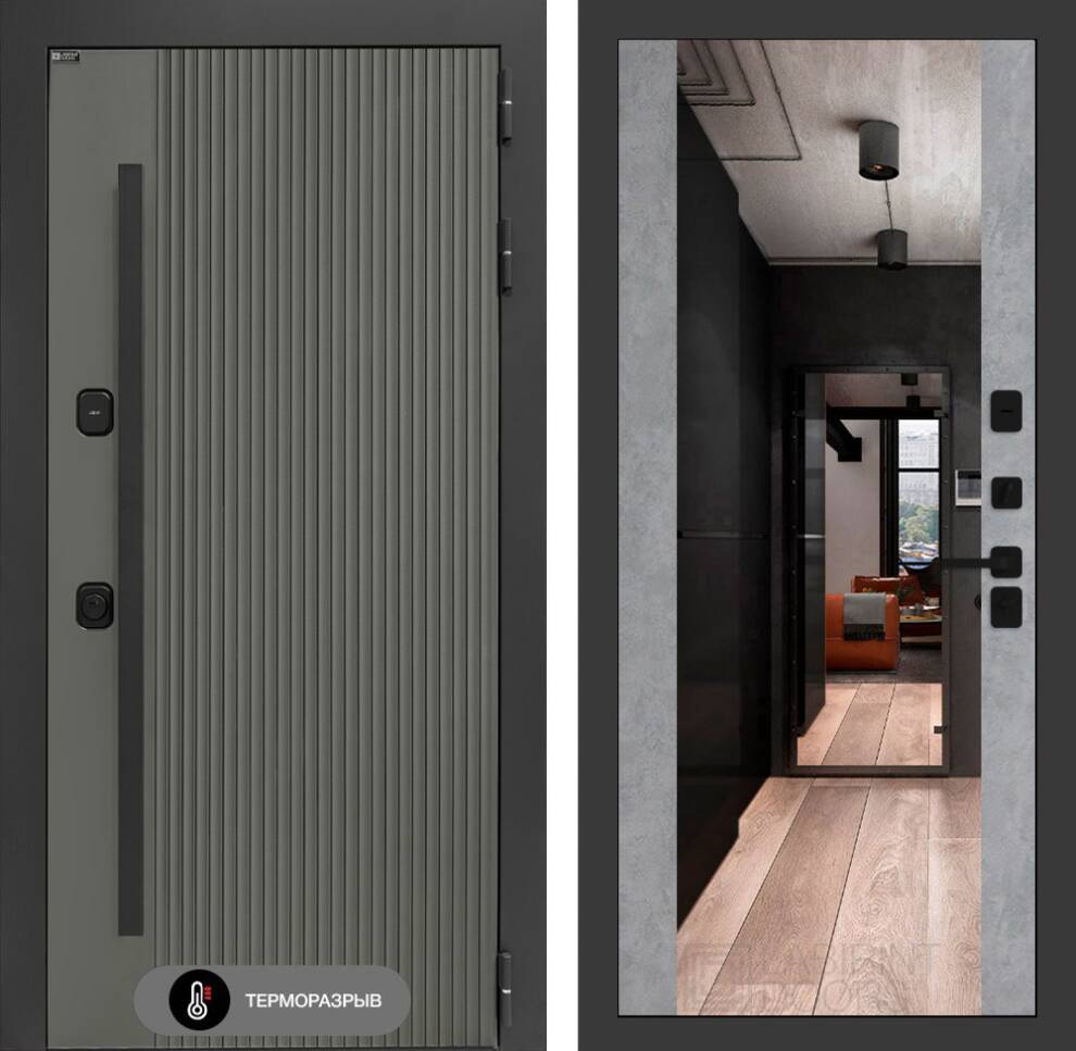 Входная дверь Термолаб 1 тепло с зеркалом Максимум - Бетон светлый