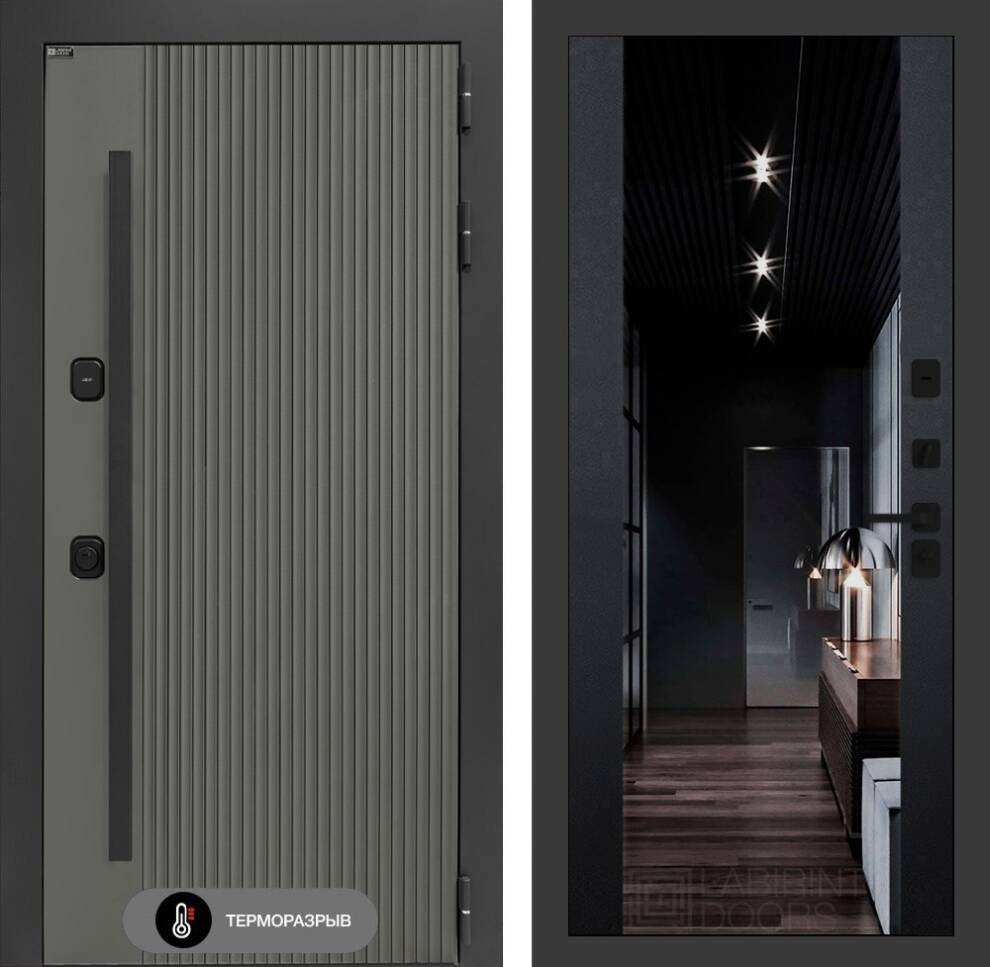 Входная дверь Термолаб 1 тепло с зеркалом (тонированное) Максимум - Черный кварц