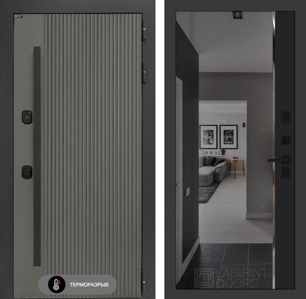 Входная дверь Термолаб 1 тепло с зеркалом (тонированное) Панорама - Черный кварц